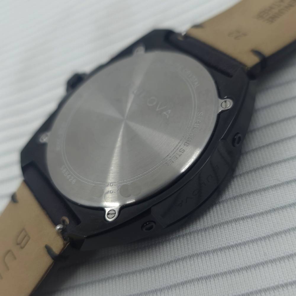 Con resistencia al agua de 10 ATM (100 metros), este modelo es adecuado para actividades acuáticas ligeras, como nadar. Se entrega como nuevo, con caja original Bulova y documentación completa.