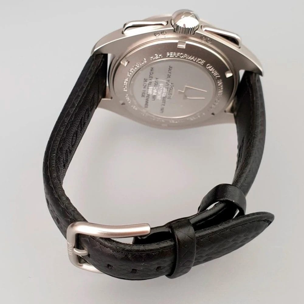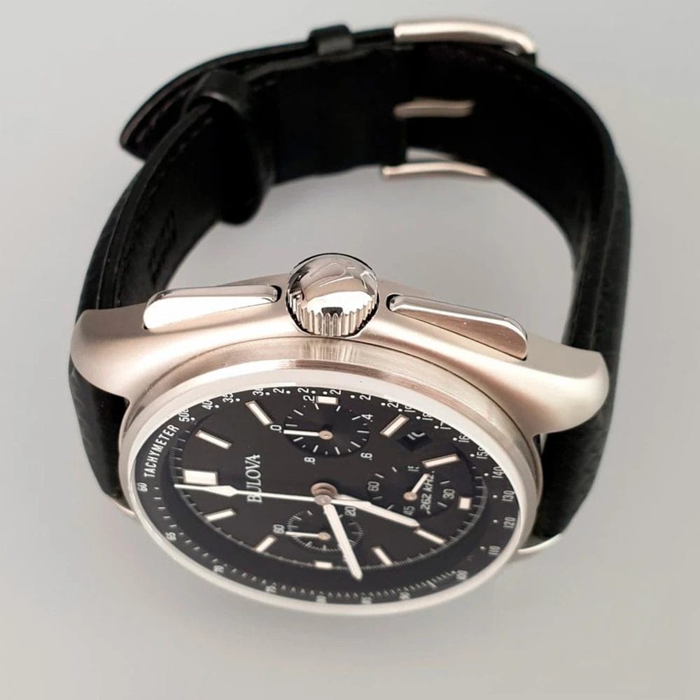 Con una resistencia al agua de 5 ATM (50 m), es adecuado para el uso diario, aunque no para nadar o bucear. Bulova Lunar Pilot Chrono Date 96B251  Se entrega sin uso, con caja original de madera, libro de instrucciones y tarjeta de garantía.
